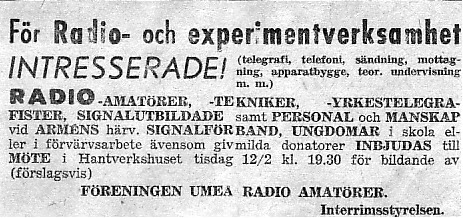 I slutet av 1945 började några radiointresserade invånare i Umeå diskutera att bilda en radioklubb.