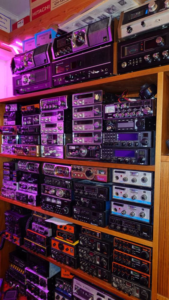 Hans, SH2HMK har sedan många år en stor och förmodligen unik samling av 27 MHz privatradiostationer, skannermottagare m.m. Dessa förevisade han och berättade historik mm.