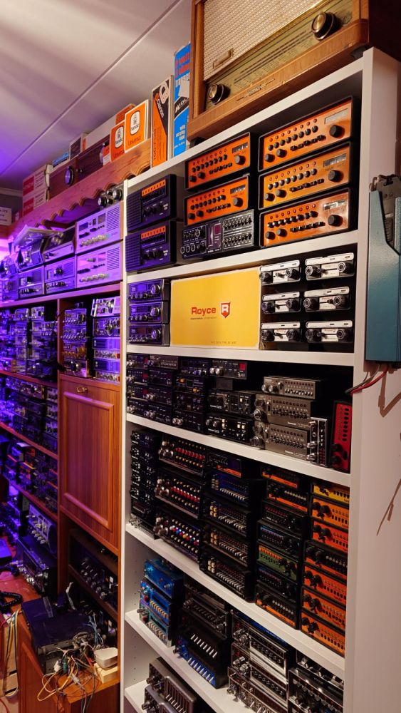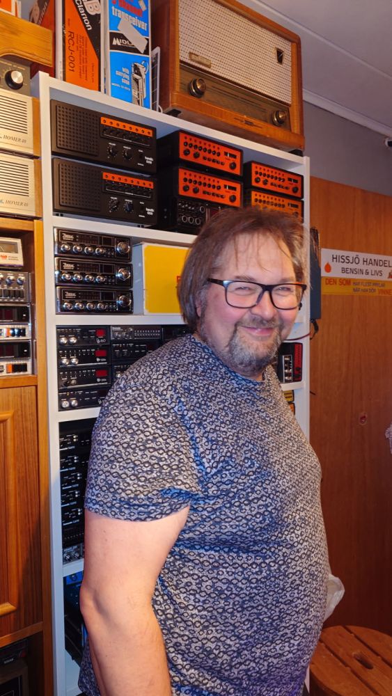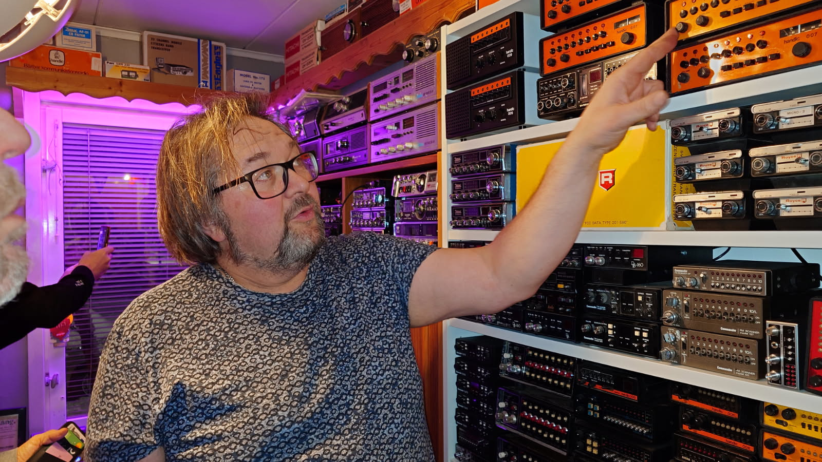 Hans, SH2HMK har sedan många år en stor och förmodligen unik samling av 27 MHz privatradiostationer, skannermottagare m.m. Dessa förevisade han och berättade historik mm.