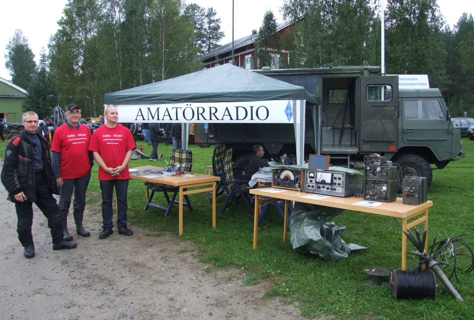 FURA demonstrerade gammal och ny amatörradio. På bilden ses Thomas/SM2OAE, Rune/SM2EKA, Ingemar/SA2AVU och Richard/SM2RIX vid stationen. "Radiovalpen" eller mer korrekt Volvo C304/TGB13 tillhör SA2AVU.