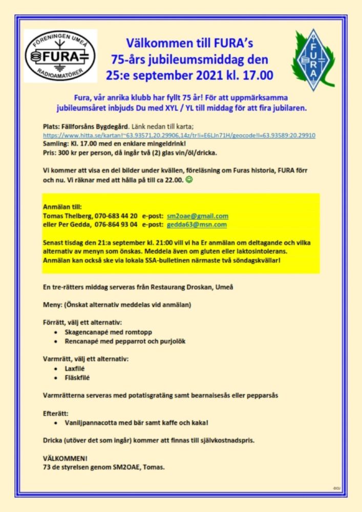 Artikel om att Fura fyller 75 år under 2021 införd i VK